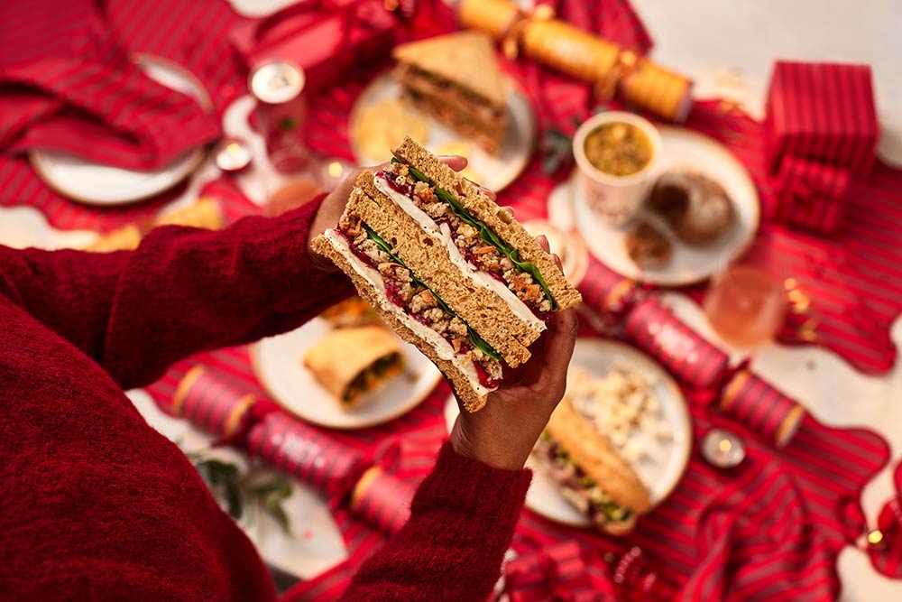 Paul are another regular in the Christmas sandwich game, this year their offering is led by the Turkey & Bacon Christmas Club. That's turkey and crispy bacon with sweet cranberry sauce and horseradish mayo. Most importantly, it's served in their always excellent sage and onion baguette. If you're looking for the veggie option, that's the Brie & Cranberry Baguette, made with French Brie, vegetarian stuffing, shredded Brussel sprouts, grilled carrots, red cabbage, horseradish mayo, fresh spinach and cranberry sauce.