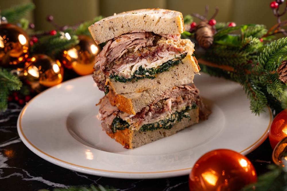 Being one of London's best sandwich shops, it stands to reason that Rogue Sarnies would be making a Christmas sandwich worth crossing town for. The main event is the Festive Turkey Club. That features wood-fire roasted turkey dipped in gravy, sage and onion sausage stuffing, marinated winter tomatoes, sliced red onion, shredded gem lettuce, Grana Padano shavings and their "secret club cranberry sauce". If that isn't enough for you, and you need a change from turkey, there's the Festive Beef Dip, featuring red wine-braised beef shin mixed with beef fat caramelised onions.