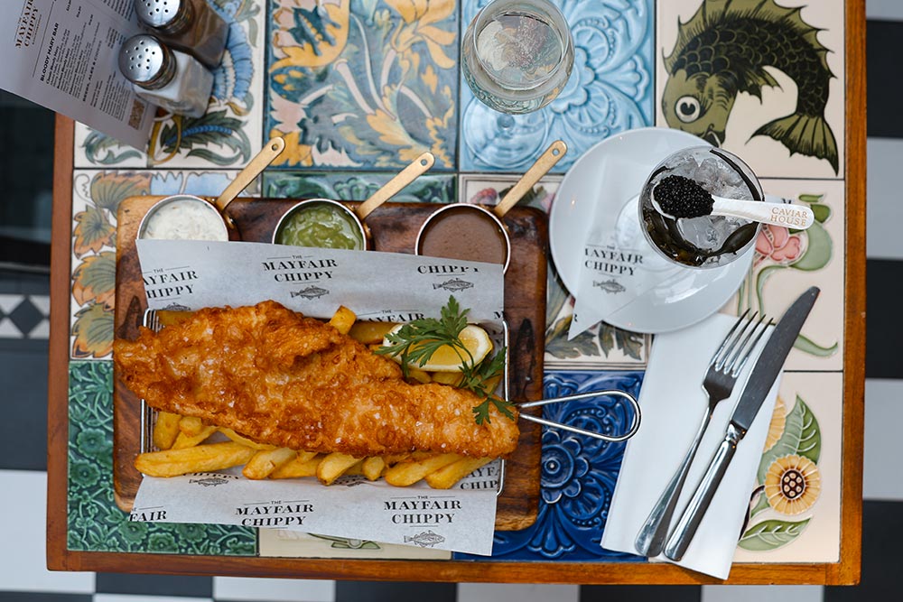 Known best for their great fish and chips, Mayfair Chippy has started branching out, particularly since opening their second location in Knightsbridge. Now they've teamed up with Caviar House and will be selling their Mayfair Chippy branded caviar in both restaurants. Here you can have a tin with sourdough crumpets, or get a 5g spoon as an upgrade on any order on the menu because yes, that cod and chips will be even better with caviar on top. Caviar bumps and oysters with caviar are also on the menu.