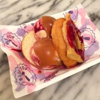 - The Goober: Blackcurrant ripple ice cream covered in peanut butter caramel sauce in a peanut butter and blackcurrant jam donut.