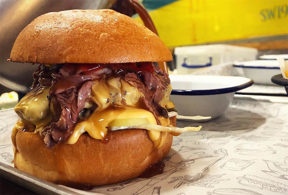 Dip & Flip's speciality is the French-dipped burger - i.e. a burger that's dipped in gravy. And yes, that is as good as it sounds. On top of that, you can get some sliced roast meat piled on top, because you can never have too much of a good thing.