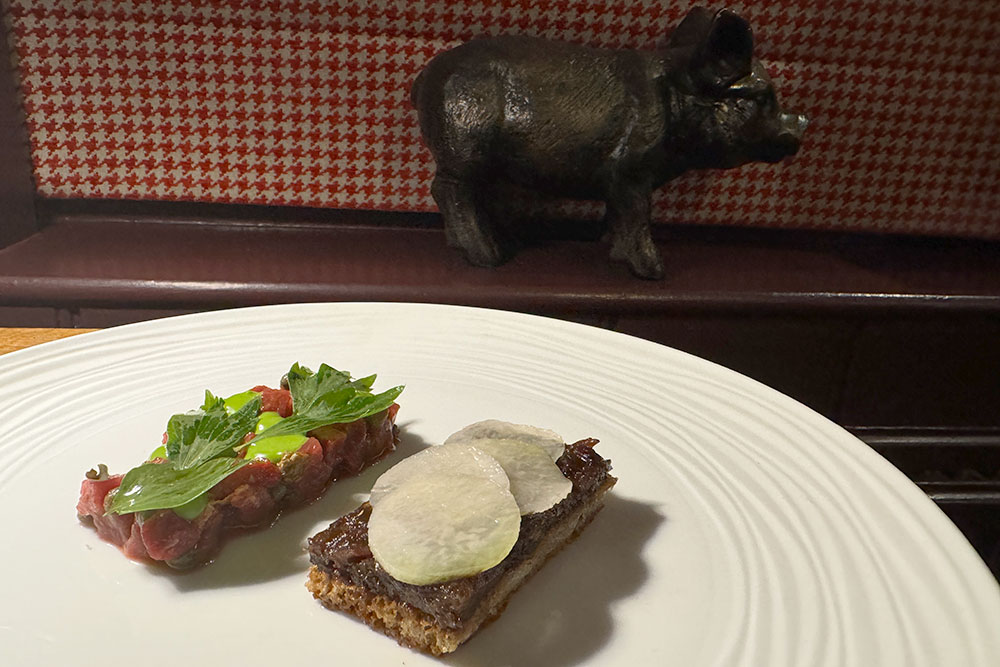 Unruly Pig (Suffolk) - Venison raw haunch Battuta and braised shin crostini