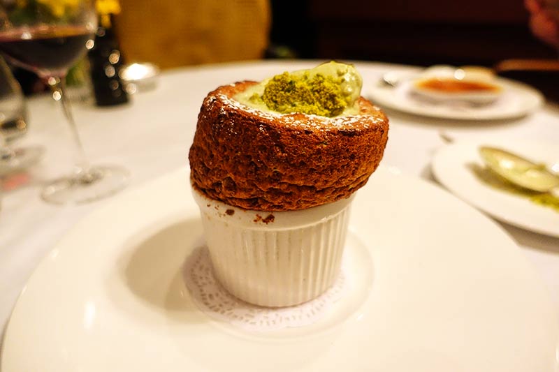 Created in homage to Pierre Koffmann's legendary dessert from his Chelsea restaurant La Tante Claire, L'Escargot's Soho version comes with a generous dollop of pistachio ice cream spooned into the souffle.