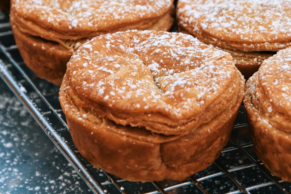 A yearly favourite, Pophams team up with The King's Ginger liqueur for their mince pies. Inside, you'll find currants, raisins, sultanas, apple and suet mixed with spices, candied peel, and citrus. All that has been steeped in The King's Ginger liqueur for two months before going inside 18 layers of Normandy butter flaky pastry, which is then filled with Cornish clotted cream.