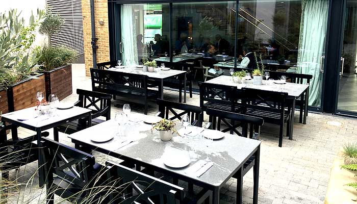 This is the latest launch from the Enoteca restaurant group and it's their biggest restaurant yet - with plenty of space outside for alfresco dining in the new Bower development on Old Street. The terrace isn't set up just yet, but the front space gets a lot of sunshine.