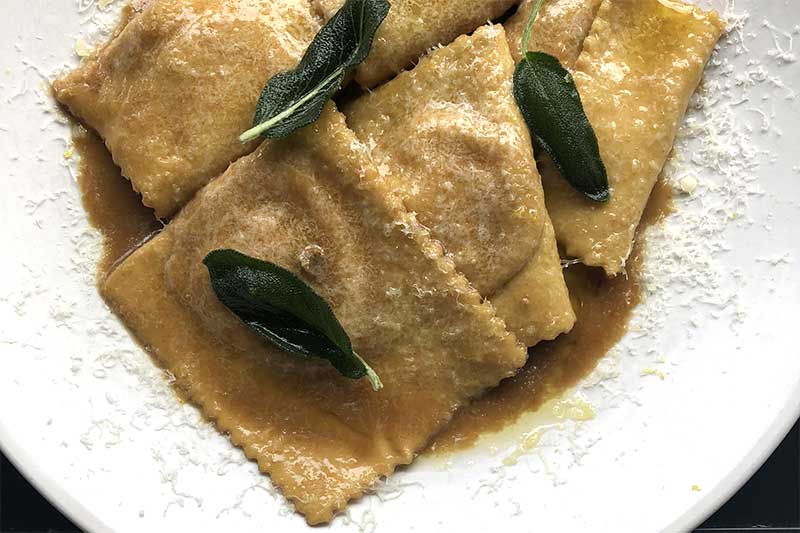Having managed to lay their hands on a whole load of delicious porcini the restaurant's putting them to good use, in a stuffed ravioli pasta with ricotta and a sauce that's made from the liquor that’s produced when rehydrating the porcini plus a lot of butter.