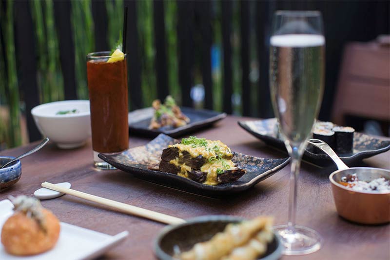 If you want a bit of a blowout (but not too much as it's cheaper than the dinner here) then the Nobu brunch may be for you. For one, there's a brunch bar (!) with dishes including yellowtail jalapeno, tenderloin tataki and chicken karage. That's followed by sharing dishes which include "Gyoza with Butter Ponzu & Eel Sauce" and "Grouper Tempura with Amazu Ponzu" as well as "Roasted Pork Belly with Spicy Ponzu Sauce and House-Made Pickles". And then it's back to the brunch bar for dessert (the green tea rolled roulade for us please).