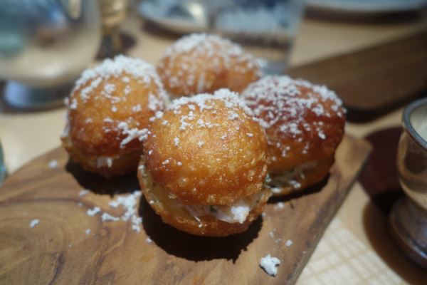 As we could see chef Nuno's signature crab-stuffed donuts with coral dusting (£6) on the menu which we'd had before we felt compelled to reorder them. And they were great, just not as good as the cornbread fingers served with an insanely good chipotle-maple butter that we'd happily have eaten on its own with a spoon.