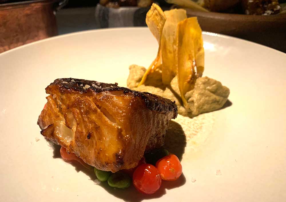 Merluza Negra - Patagonian black hake, grilled eggplant, plantain crisp (£35) - it's been a while since I've had the black cod at Nobu, but we honestly think this was a lot better. Beautiful fish with a delicate marinade and cooked to perfection.