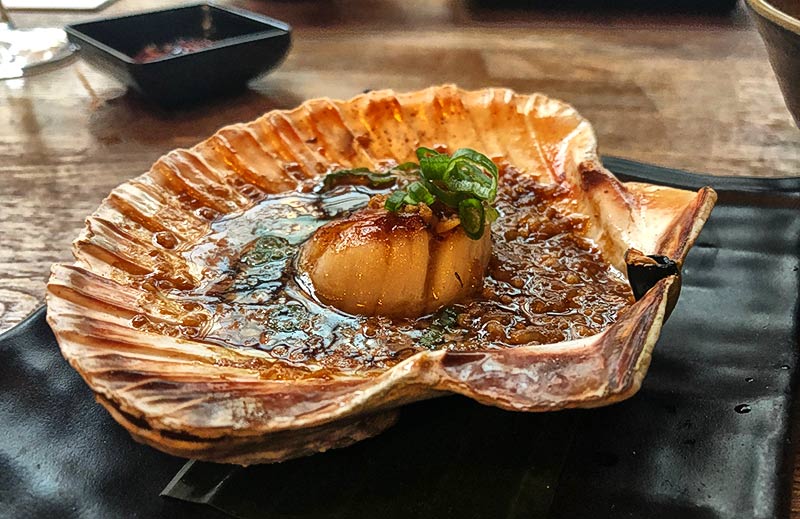In the flaming skewer section - but clearly not a skewer - is the grilled scallop in the shell (£4.50, min two orders). This is just drowning in garlic. And yes we did pour it all into our spoons to drink. It was worth it. Don't judge us.