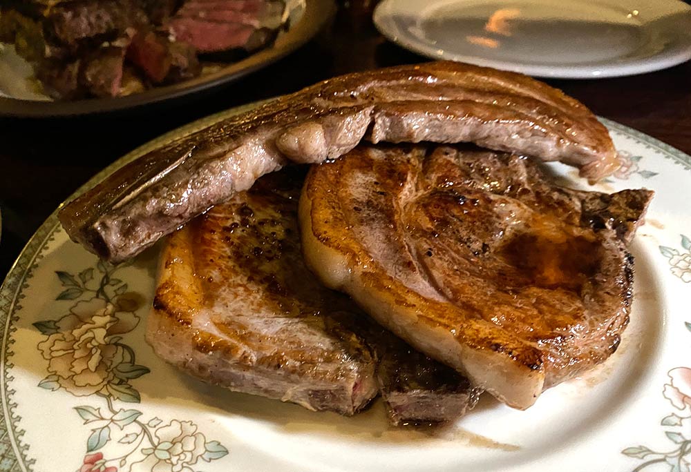 Porterhouse steak - all the Blacklock steaks are dry-aged up to 55 days. On the menu, you'll find rump fillet and cap and the new Denver and Sixth Rib Eye. But on the board, you'll also find larger cuts that are great for sharing like this.