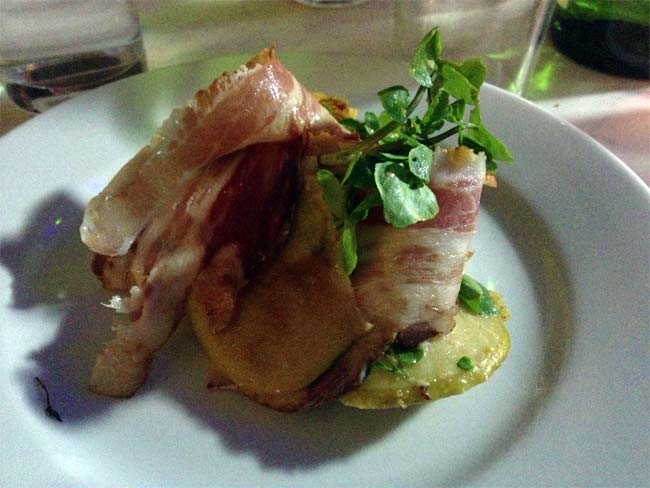 It was a soft launch, so we'd expect a few things to be ironed out before the launch on Thursday December 6, but we were already impressed with what they'd managed to do by their second service. Salon is above Brixton's Cannon & Cannon deli on Market Row, just around the corner from current Brixton fave Wishbone. It's a small restaurant above the shop, seating about 25, and features the kind of menu that you'd be familiar with if you'd dined with the Young Turks. So there's a set menu of four courses for £29, with an aperitif thrown in too. When we were there on Saturday, that was Prosecco with quince puree.