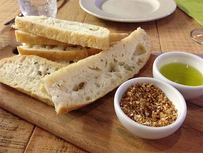 Foccacia - served up with olive oil and utterly, utterly delicious dukkah (£4) - was the first hint that this was going to be pretty special. We followed that with potato and rye bread with seawed butter, topped with oyster, borage leaves and borage flowers (£6) - an ostensibly veggie dish which tasted completely of the sea. Sprouting bean and seeeds with miso aubergine (£6) was a bowl of really well dressed sprouts served up with crispy shards of potato wafer and just enough chewy crispy chicken skin to make this almost a perfect salad dish.