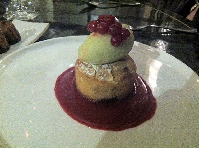 Following this we were almost tempted to skip dessert and go for one of the puddings to share, the cannalés bordelais. The sharing puddings (the other being warm madelines in chocolate sauce) were a great alternative to a full-on dessert. However we were encouraged by our waitress to try the blackberry financier and green apple sorbet, which we happily demolished too.