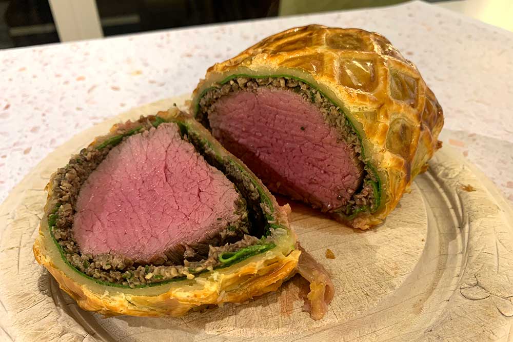 Beef Wellington with truffle jus, potato gratin and green beans with herbed butter. Very specific cooking instructions made it easy to get this right - although it helps if you have a meat thermometer. The beef and gratin are popped in the oven while the beans and jus are heated on the hob. And it really was an amazing bit of meat.