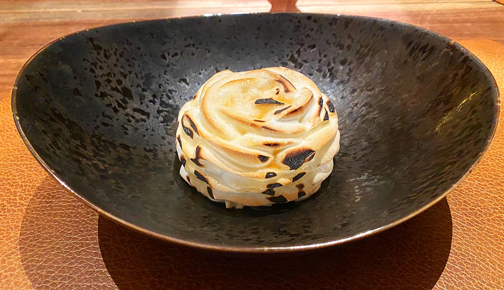 Baked Alaska with candied orange, vanilla ice cream, Grand Marnier (£16) - check out our Instagram video to see this bit of tableside theatre in action.