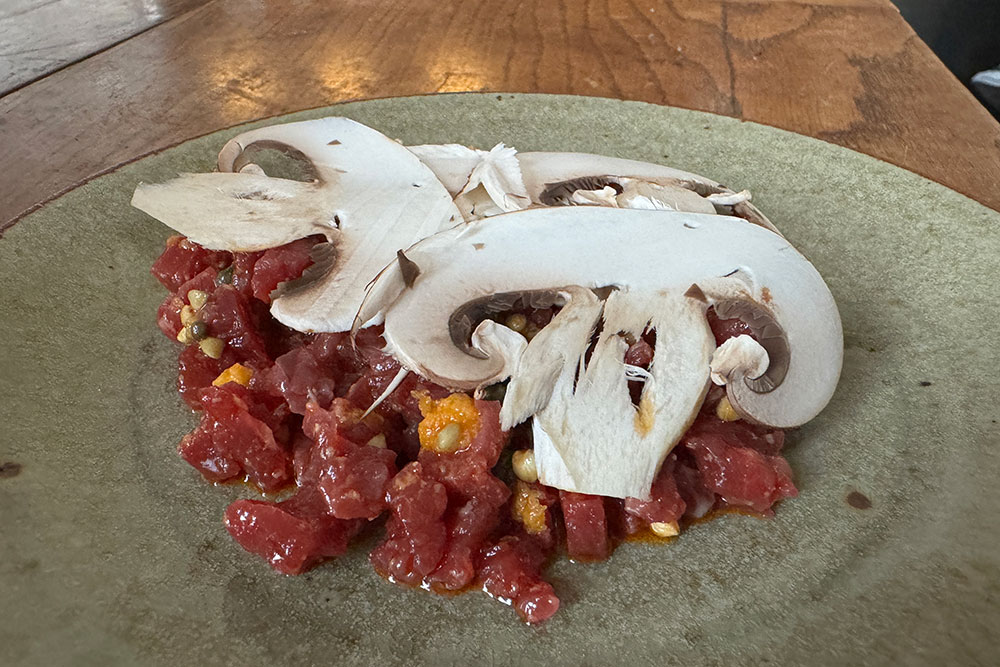 Raw beef with chilli and mushrooms (£14) - a particularly good take on beef tartare that paired particularly well with those wafer-thin mushrooms as well as a welcome crunch to the dish.