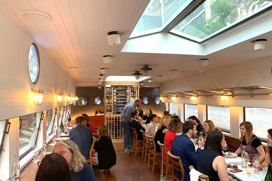 This is the second floating restaurant from the folk behind the London Shell Co (their other boat is also moored nearby between services) and seafood is definitely a focus.