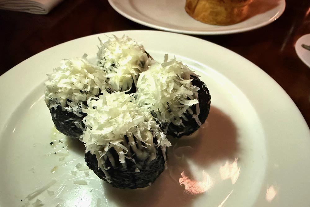 Guinness cheddar croquettes with garlic mayonnaise and Parmesan (£14)