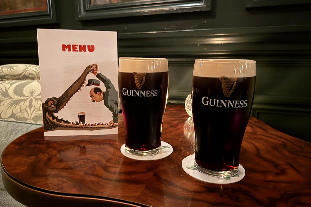 When you're in The Ned itself, the Guinness Bar is on the lower ground floor. So head to the big stairs on the west side of the building and when you go downstairs, you'll find the bar in front of you. There are a few signs on the way but, perplexingly, not on the actual entrance to the bar itself. Still, if you do get lost, there are plenty of staff to show you the way.