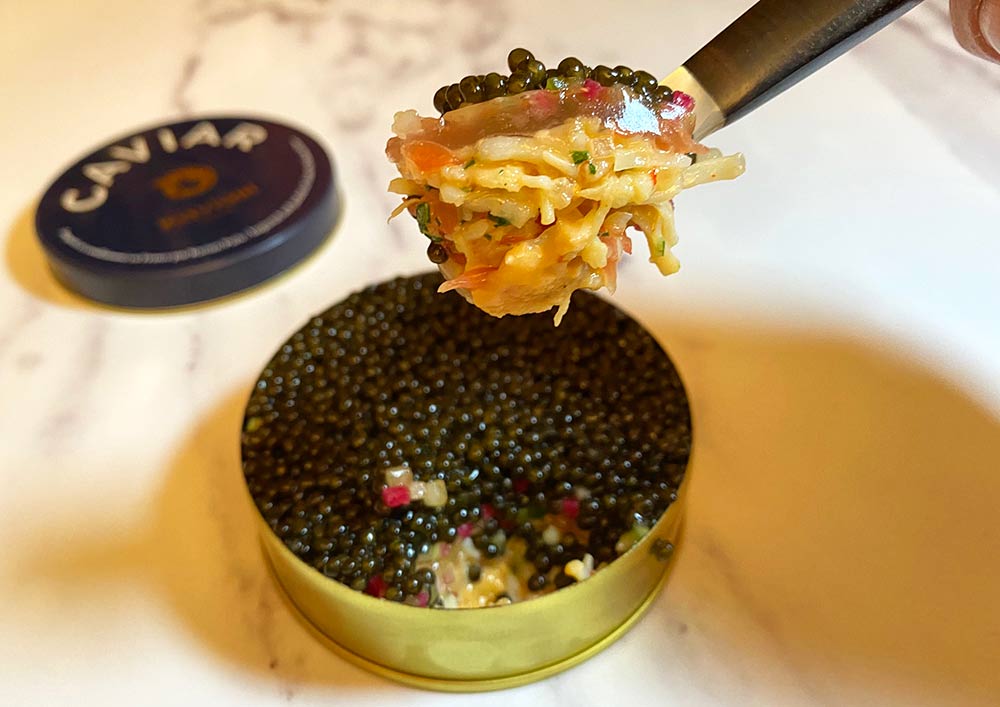 Next up is the Caviar dish. At first glance, this just looks like a huge tin of caviar but...