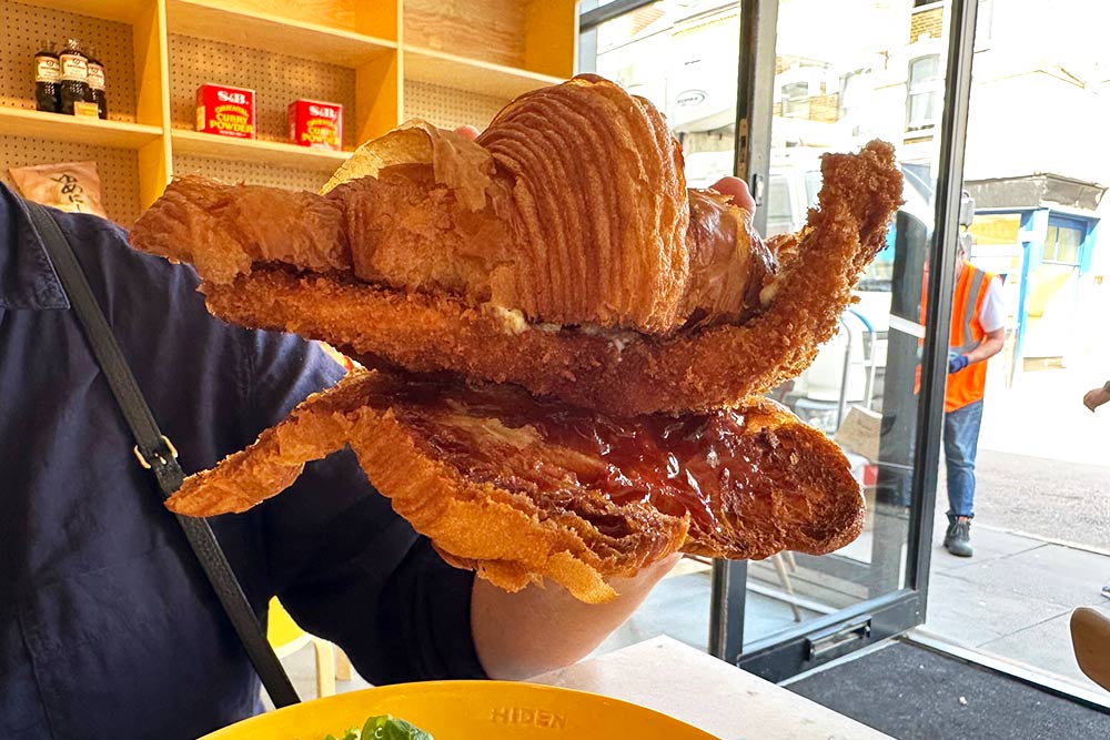 Hiden chicken katsu croissando (£7.50) - with homemade tartare sauce and Japanese brown sauce. It's potentially the most exciting new sandwich for Londoners to try this year and we loved it.