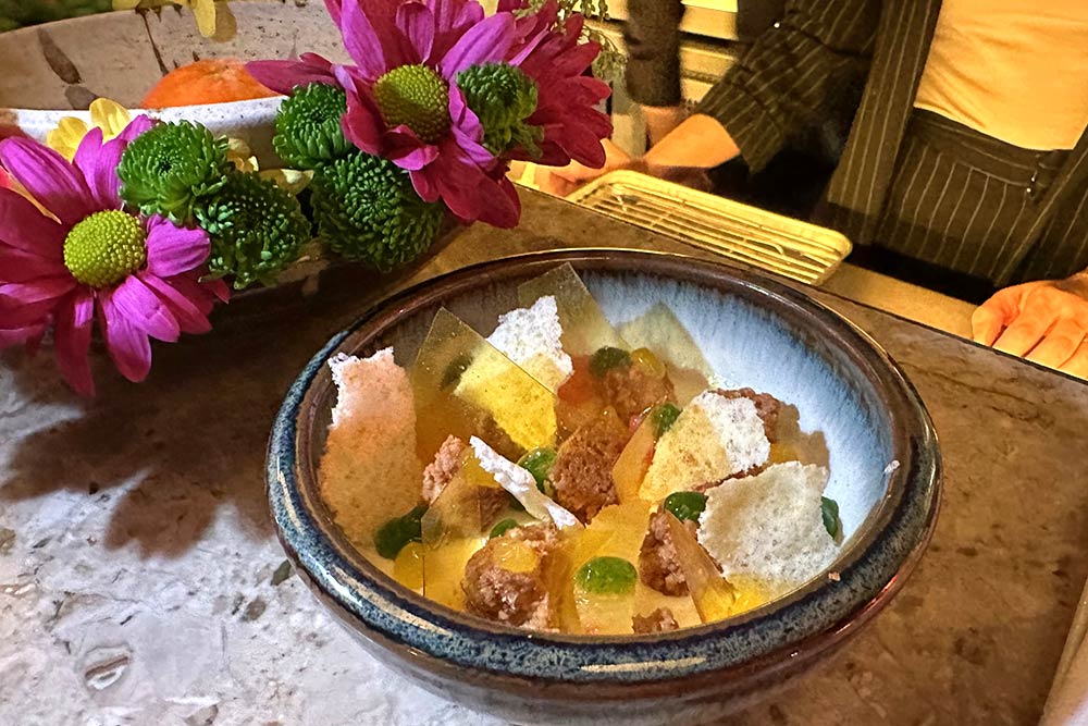 Skewers do make an appearance in a call-back to the first iteration of Humble Chicken. These are chicken achilles skewers with charcoal fat, daikon oroshi and kosho.