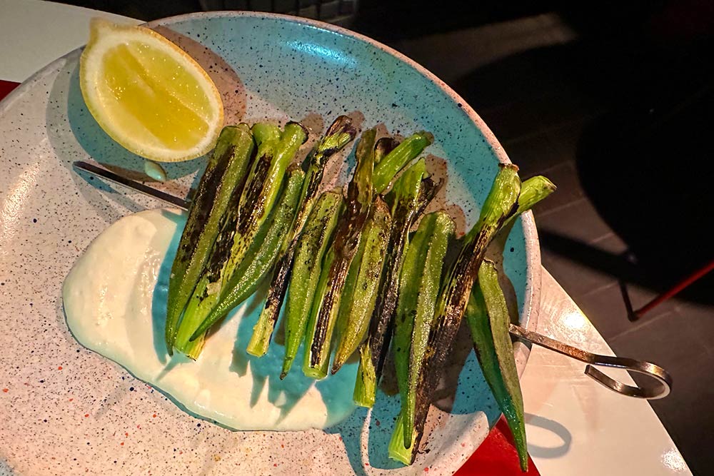 Sides are also very unique - this is an okra skewer (with some spring onion in there too) served with mango & yellow habanero vinaigrette (£7)