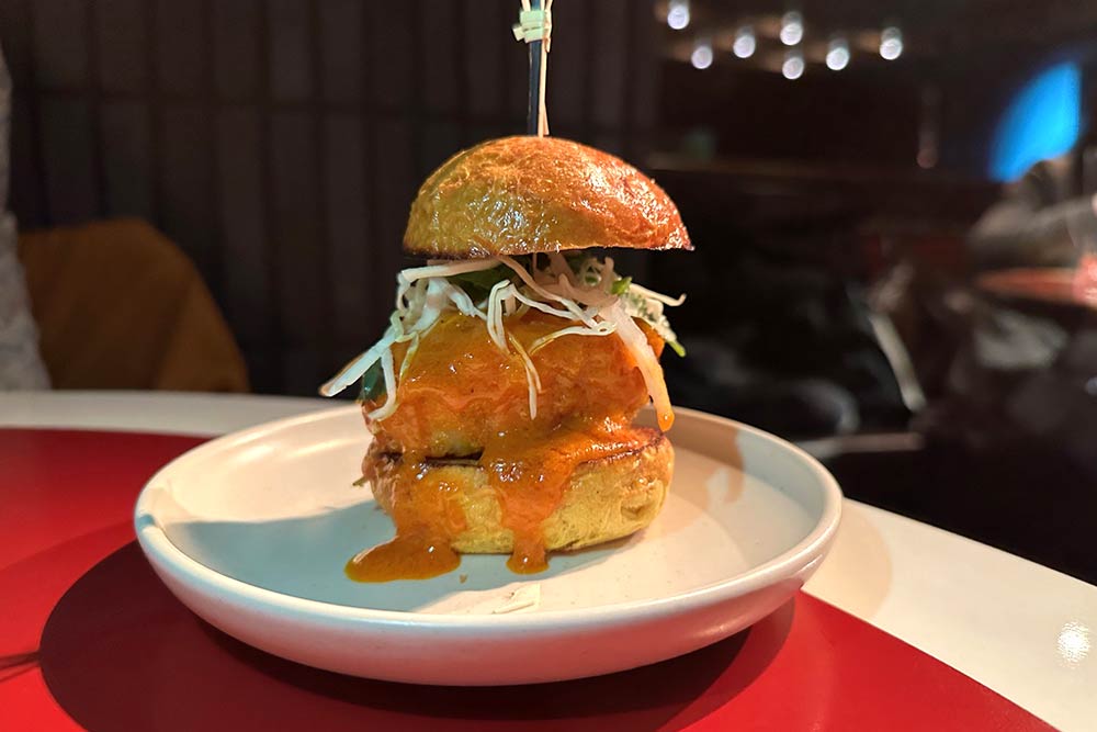 Moqueca monkfish slider (£16) - here, the monkfish is cooked Moqueca style (that's a seafood stew with its origins in the Afro-Brazilian food culture of Bahia), served with cabbage slaw, kewpie mayo on a brioche bun