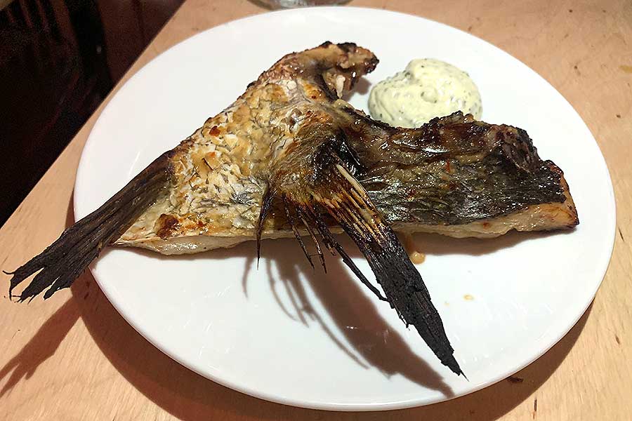 Stone bass with cashew celeriac mash (£18) - perhaps the most classic looking fish dish of the night, and given a lovely autumnal treatment.