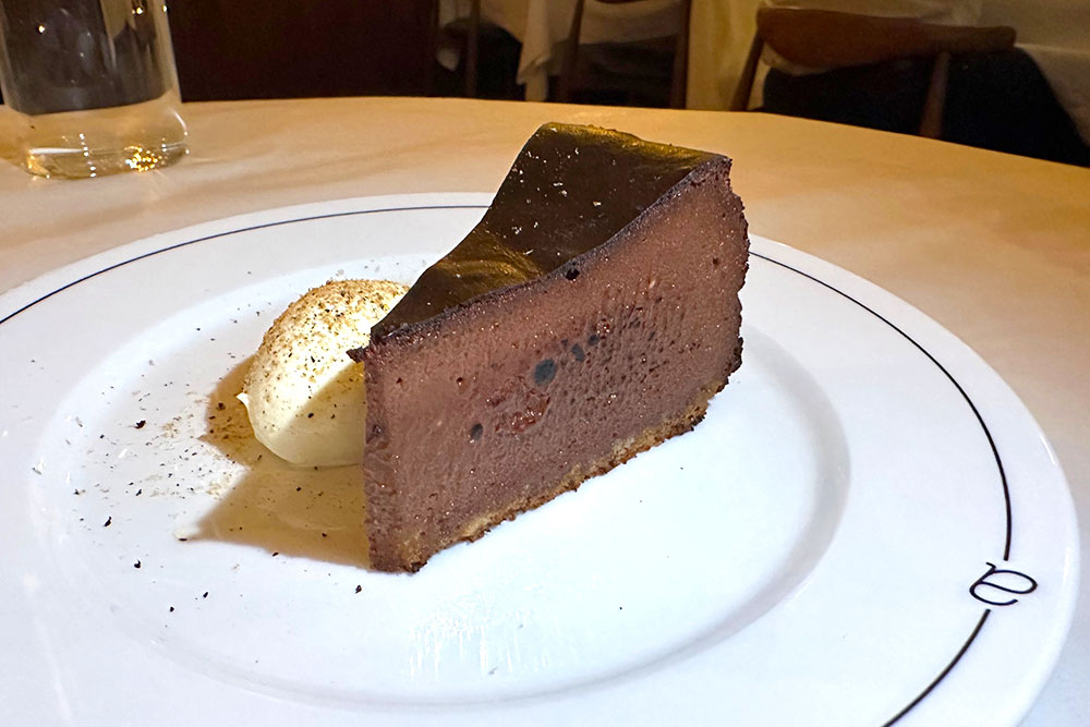 70% chocolate Basque cheesecake with orange, tonka bean (£9.50) - the orange is orange zest on top. Basque cheesecake is very much a thing now, so it's good to see a very well-made alternative to the norm here.