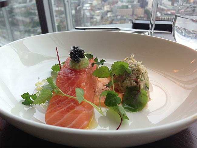 This is the last of the three restaurants centred around the 32nd floor of the Shard. We've already taken in both Oblix and Hutong and this is the second from the Aqua group (who are also behind the adjoining Hutong)