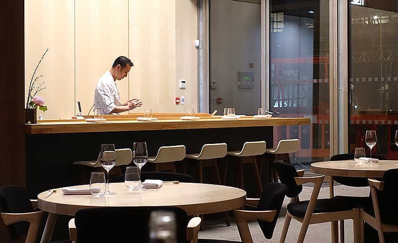 it depends, really. There's a decent sized private dining room with its own bar and we liked our table with its view into the serene kitchen. Alternatively you could pop yourself up at the sushi bar which would be a great spot for solo dining.