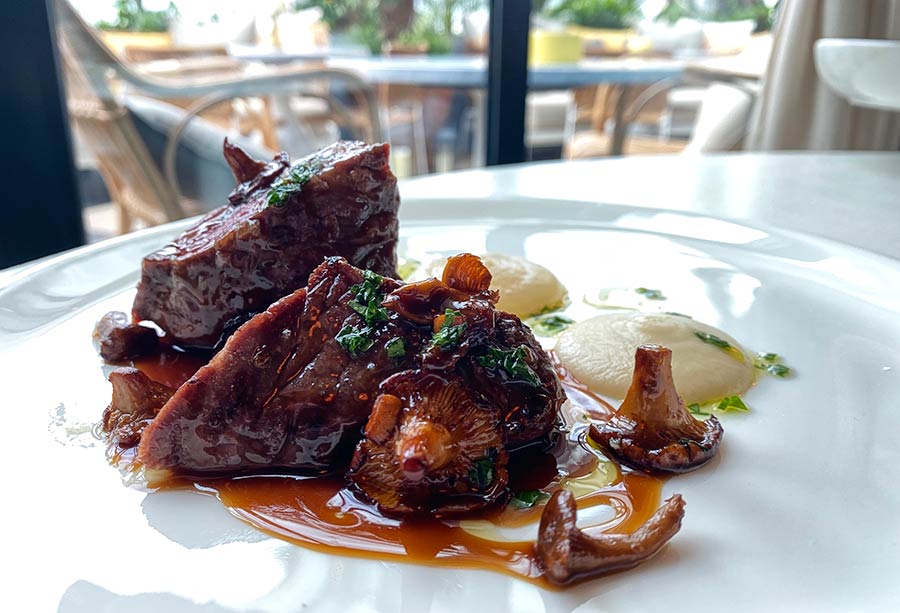 If you stick to the small plates and plancha there's plenty to choose from. They do a Norfolk hispi cabbage on the grill served with a bean stew and chestnut crisps (£16) - or there's heritage carrots with goat's curd, walnuts and honey. We loved this particular one...