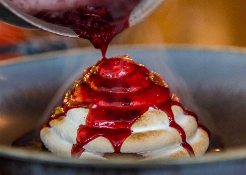 For dessert, the drama continues with flambéed cherries and kirsch poured over a hazelnut Baked Alaska. Trust us, this is not meringue as you know it; it's a lightly toasted casing for a praline-esque mousse, any sweetness cut through with the cherry reduction. Bliss.