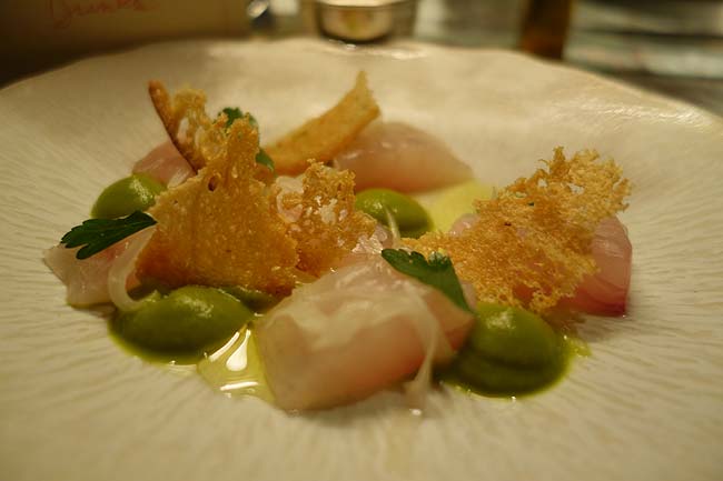 In charge of the food at Chiltern Firehouse is Nuno Mendes, coming off a very successful and highly rated stint at east London's Viajante. While the food at Viajante was more precise (there were certainly tweezers in evidence there) Mendes at Firehouse offers a more contemporary American style approach - but with a definite Mendes touch as everything surprises - no matter how familiar it might seem at first glance on the menu.