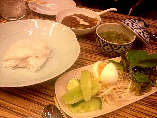 The mains are divided into several sections - rice, noodles, soups and naamyaa (plus the western dishes that we steered clear of). The naamyaa was, alas, where we made our big mistake. We're probably a bit too timid when it comes to spicy dishes, and should have heeded the warning that the beef naamyaa was going to be a bit on the hot side. Unfortunately, it was so hot that we weren't quite able to judge just how good the other dishes were. The first of these, a seafood laksa was one that we'd like to try on a return trip, but we honestly couldn't taste the soft shelled crab after that beef naamyaa. That said, clearly there's going to be something on the menu for the more adventurous of you.