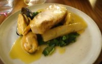 Thee's also planty available by the carafe and with all that in mind, we opted for an excellent Domaine Gayda Grenache Blanc/Rossanne/Marsanne for £23.