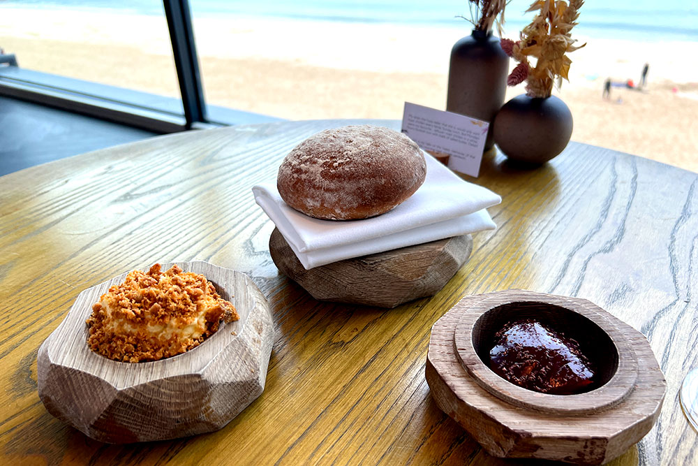 The restaurant has an extremely impressive setting, right above the beach looking out towards the sea. Whether you're in the bar or the main restaurant, it really is an impressive sight, whatever the weather. We visited on a cold yet relatively calm day and it's very soothing gazing across the bay during the meal.