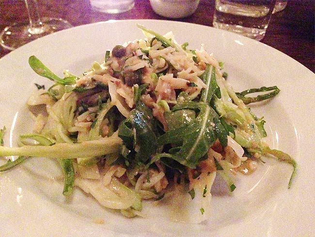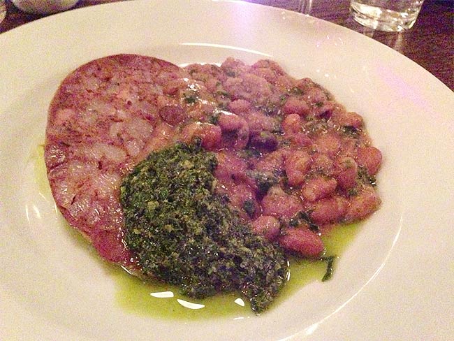 But of what we actually tried – a few things really stand out. The pigs head croquettes were pleasingly meaty and chewy – and came with well matched grebiche sauce while a quick taste of the crab and puntarella salad almost made this salad-afeared writer wish he’d ordered that too. A special of braised meatballs and lentils was also a big winner (with sauce that it’s worth saving bread for).
