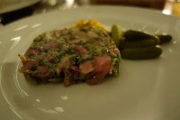 We started off with a couple of decent cocktails - the fire side sour (tonka infused vodka, apricot liqueur, lemon and lime juice, angostura bitter and egg white - £9) being the best. Most of the cocktails were around the £8-£10 mark, while the wine starts at £19.75 a bottle, with a good seelction available under £30. However, glasses were served as 125ml - something that's well suited to a wine bar or Soho restaurant - but not to a hotel restaurant (in our opinion), We hope they at least add some carafe options here.