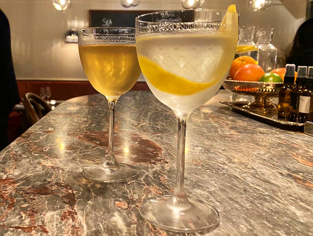 A damned good martini backed up by the excellent Golden Compass (Compass Box Artist Blend scotch, sauternes, agave, citrus oils). We also really covet their cocktail glasses.