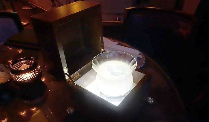 Although he's often to be found touring the world, talking at cocktail conventions and seeking inspiration for new drinks, Artesian's Head Bartender Alex Kratena was in situ on the evening we were there. Kratena's cocktails are extraordinary concoctions - visually stunning as well as good to drink. We worked our way through a decent portion of his recently launched Surrealism menu - which the SNAX menu was devised to match. Personally, we haven't had an evening like this since we went to The Fat Duck years ago. We were blown away by both the cocktails and the food. From using Guatamalan volcanic rock as a drinking vessel to pair with Guatemalan-sourced Zapaca rum to Japanese Bloody Mary macarons, the whole experience was enormous fun.
