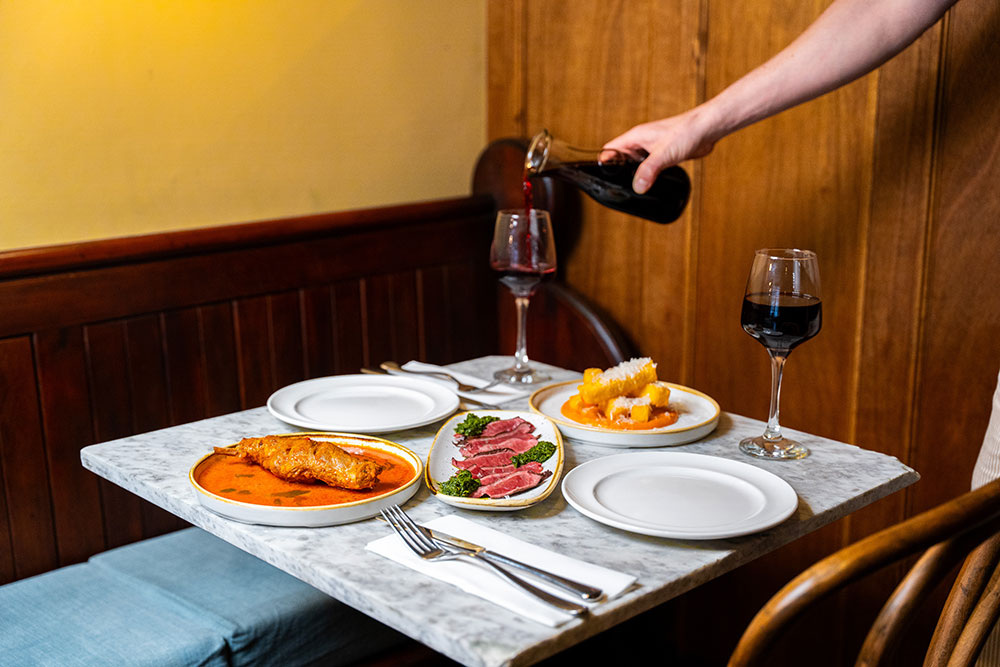 The kitchen is led by Head Chef Elie Fourcroy (awarded a Michelin Bib Gourmand in 2025 at Artusi) whose produce-first philosophy manifests in a monthly changing menu which evolves with the seasons. Previous favourites include Spiced lamb neck with rice & burnt leek, Gnocchi with pancetta & cavolo nero and Braised chicken leg with celeriac.